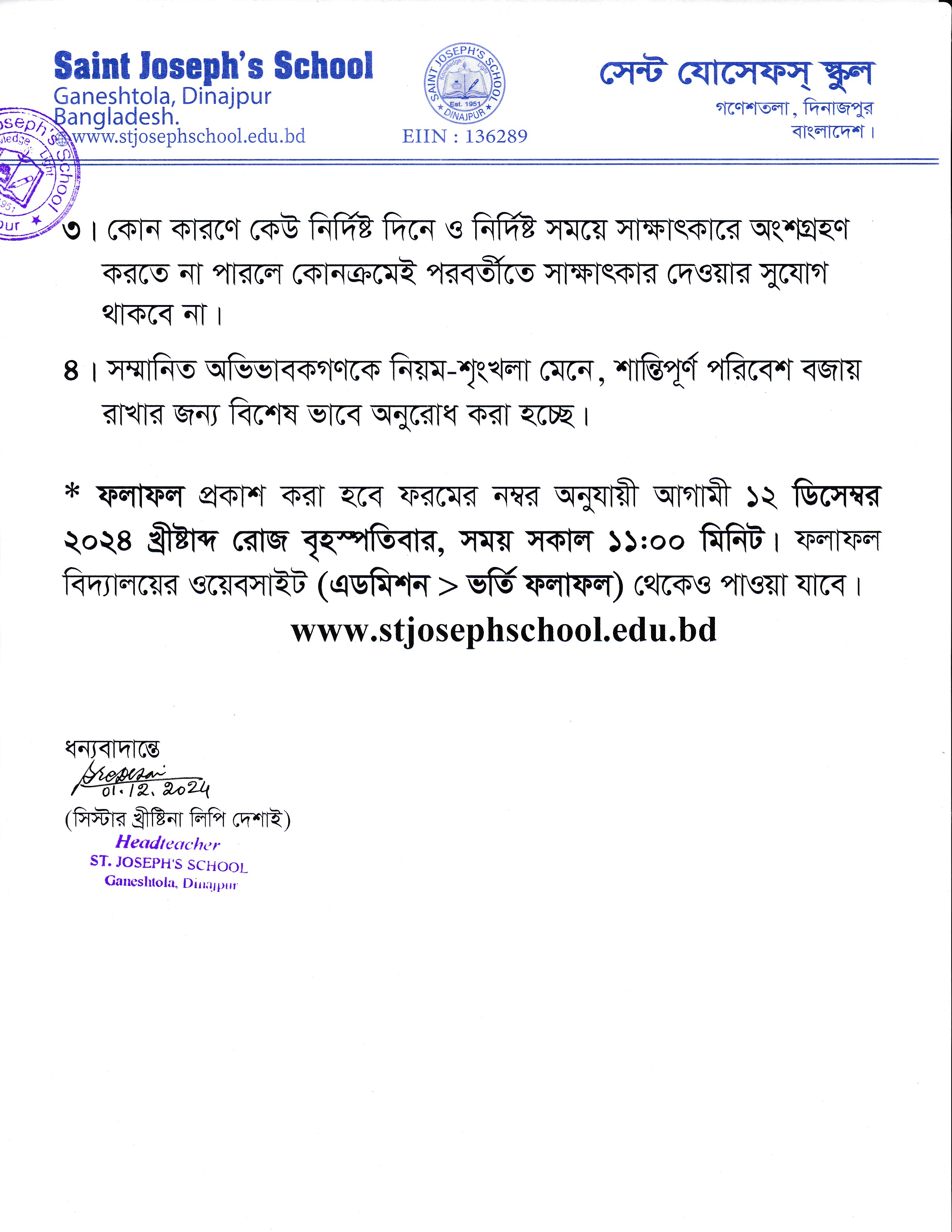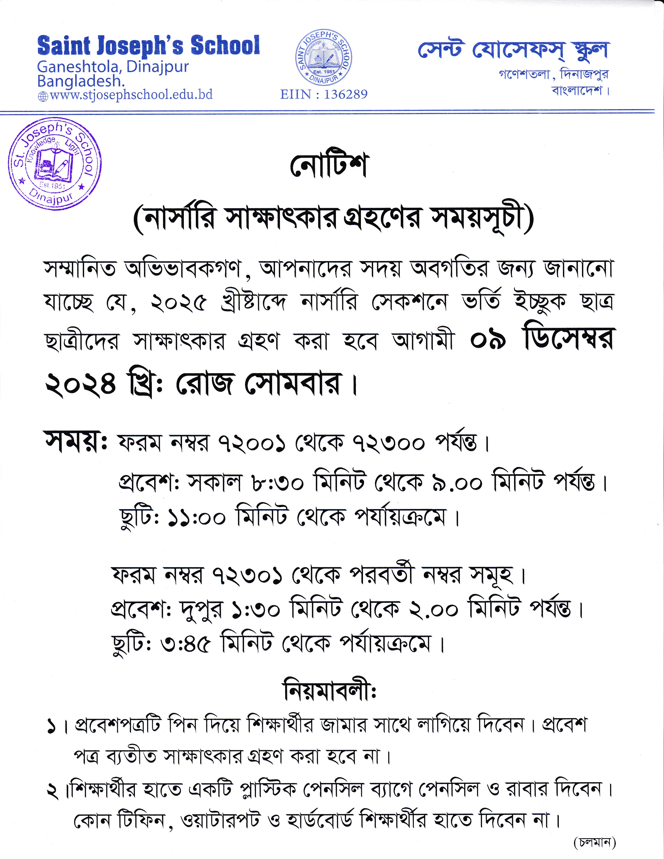 ২০২৫ শিক্ষাবর্ষে নার্সারি সাক্ষাৎকার গ্রহণের সময়সূচী প্রসঙ্গে