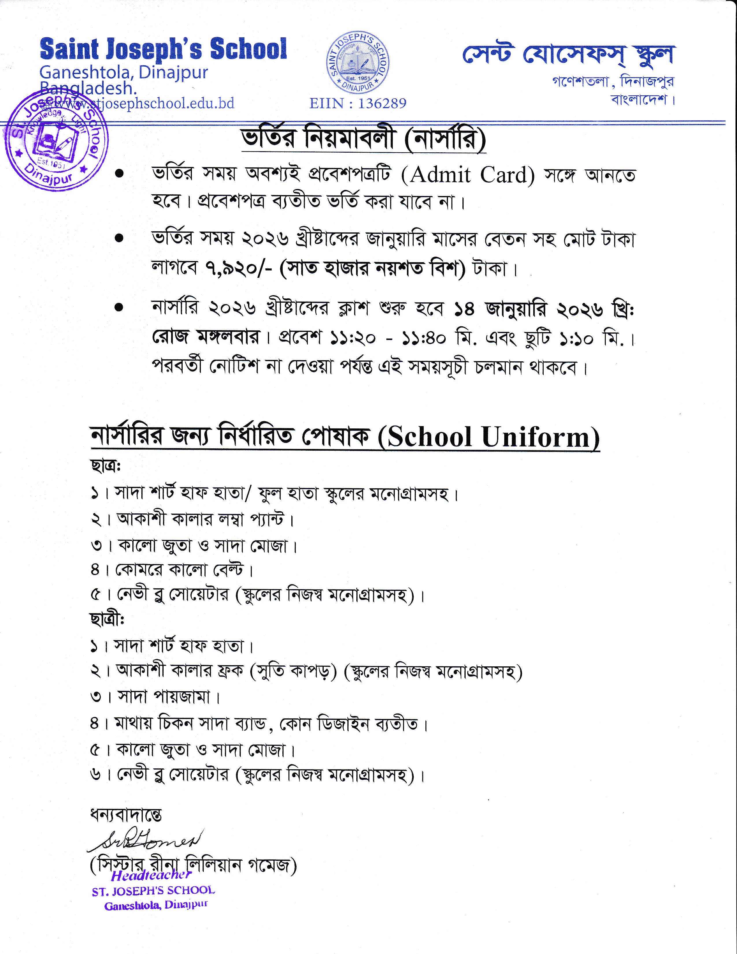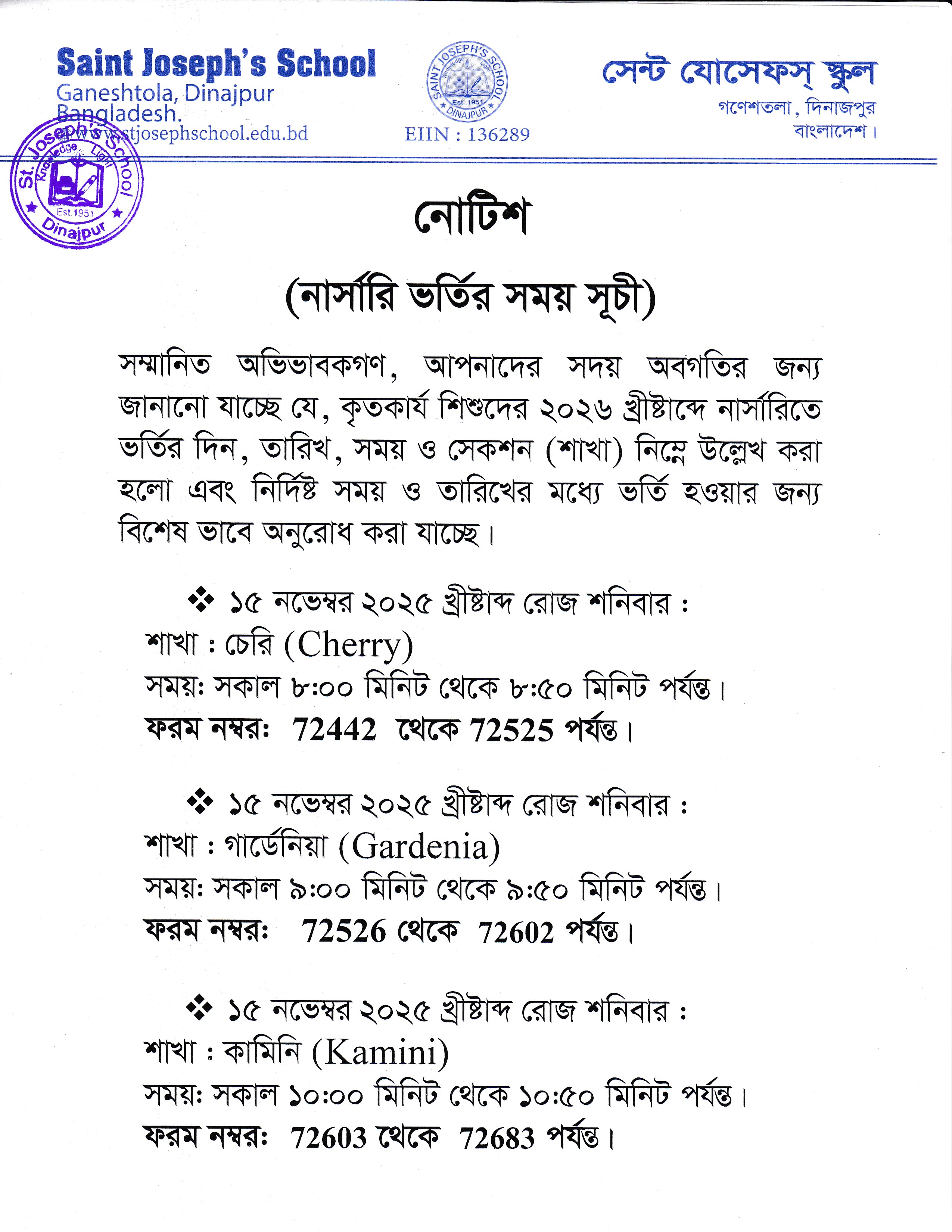 ২০২৬ শিক্ষাবর্ষে নার্সারি শ্রেণিতে ভর্তির সময়সূচী প্রসঙ্গে