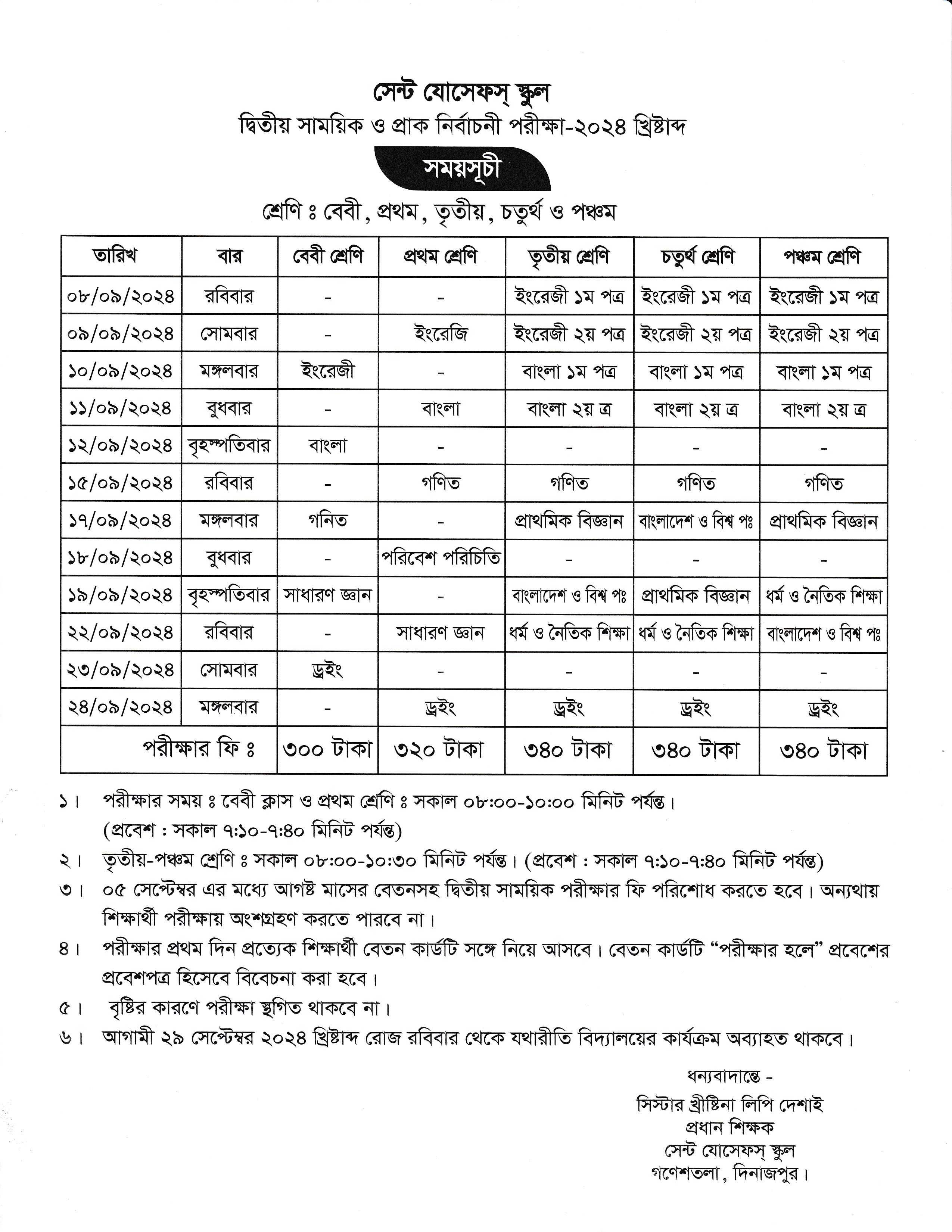দ্বিতীয় সাময়ীক ও প্রাক নির্বাচনী পরীক্ষা ২০২৪ এর রুটিন (বেবী, প্রথম, তৃতীয়, চতুর্থ ও পঞ্চম শ্রেণি)