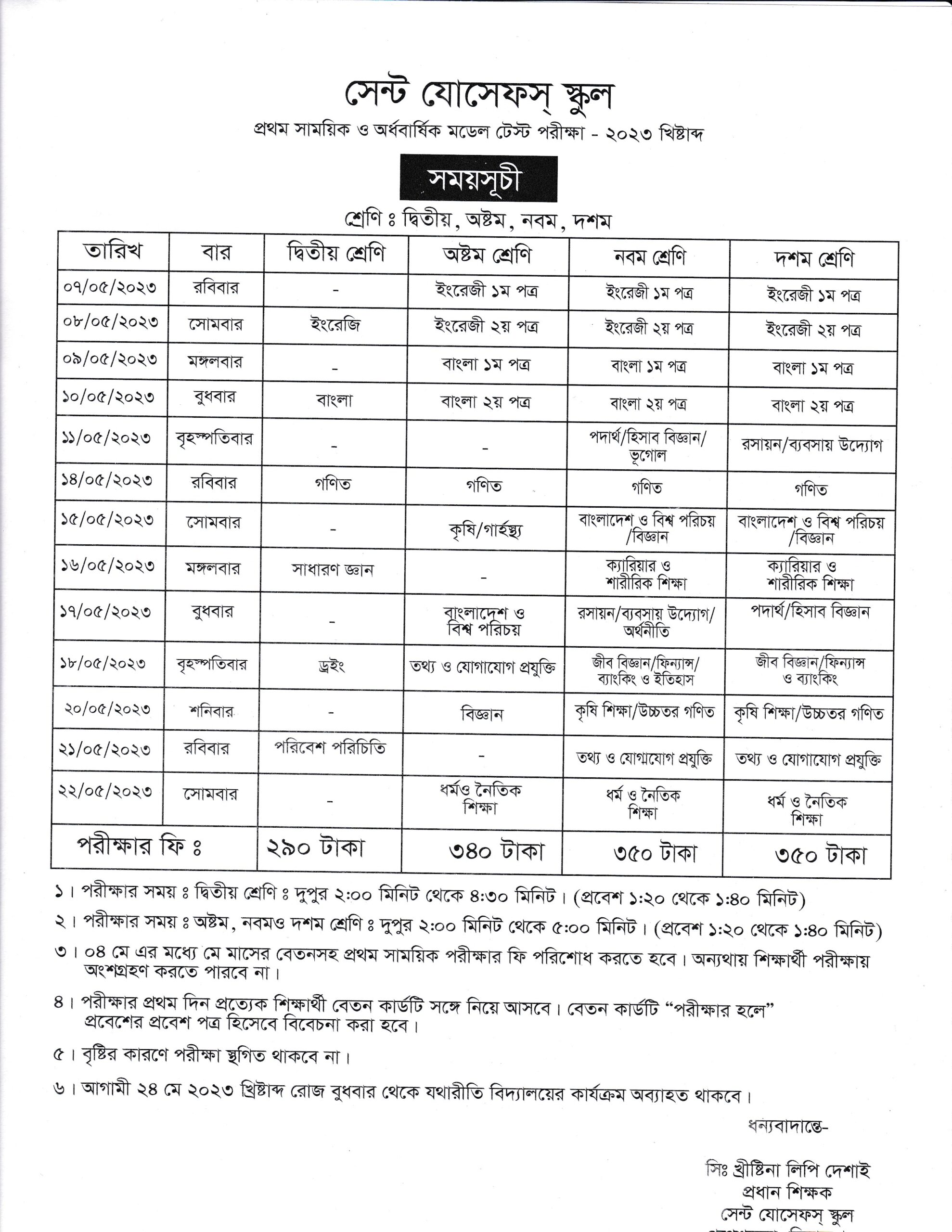 প্রথম সাময়িক ও অর্ধ বার্ষিক মডেল পরীক্ষার রুটিন ২০২৩ খ্রি: দ্বিতীয়, অষ্টম – দশম শ্রেণি