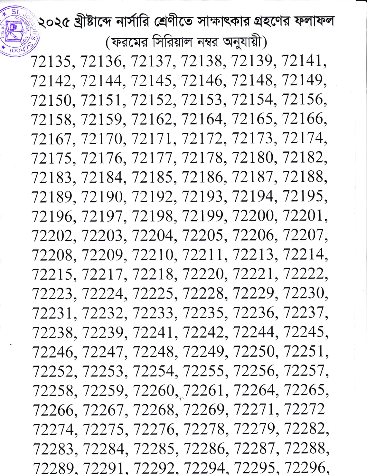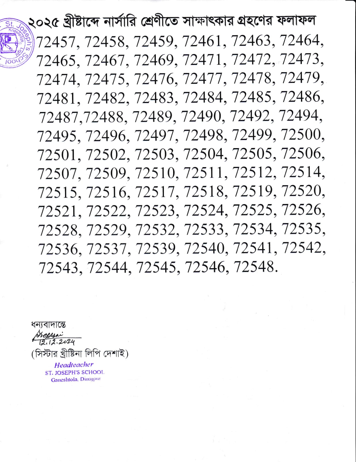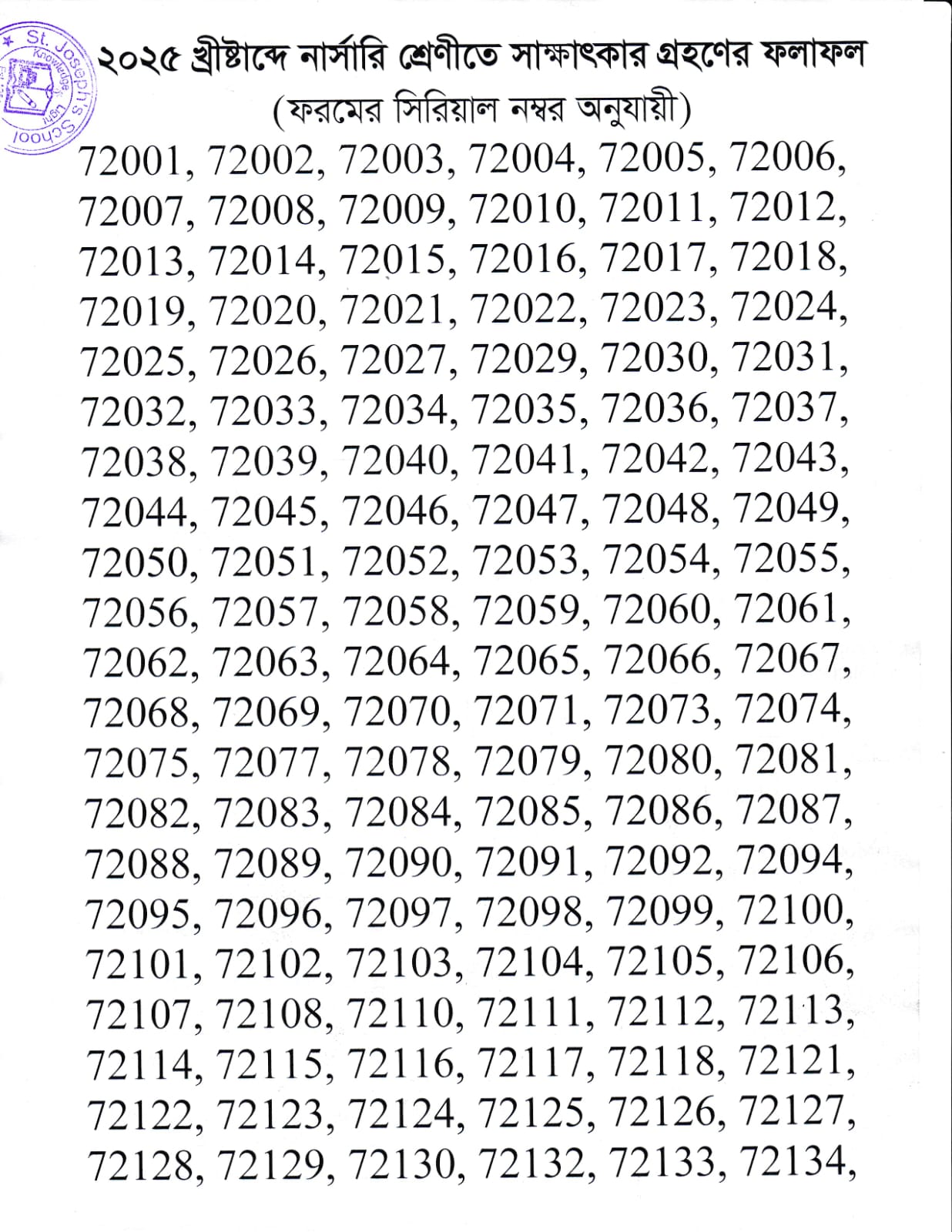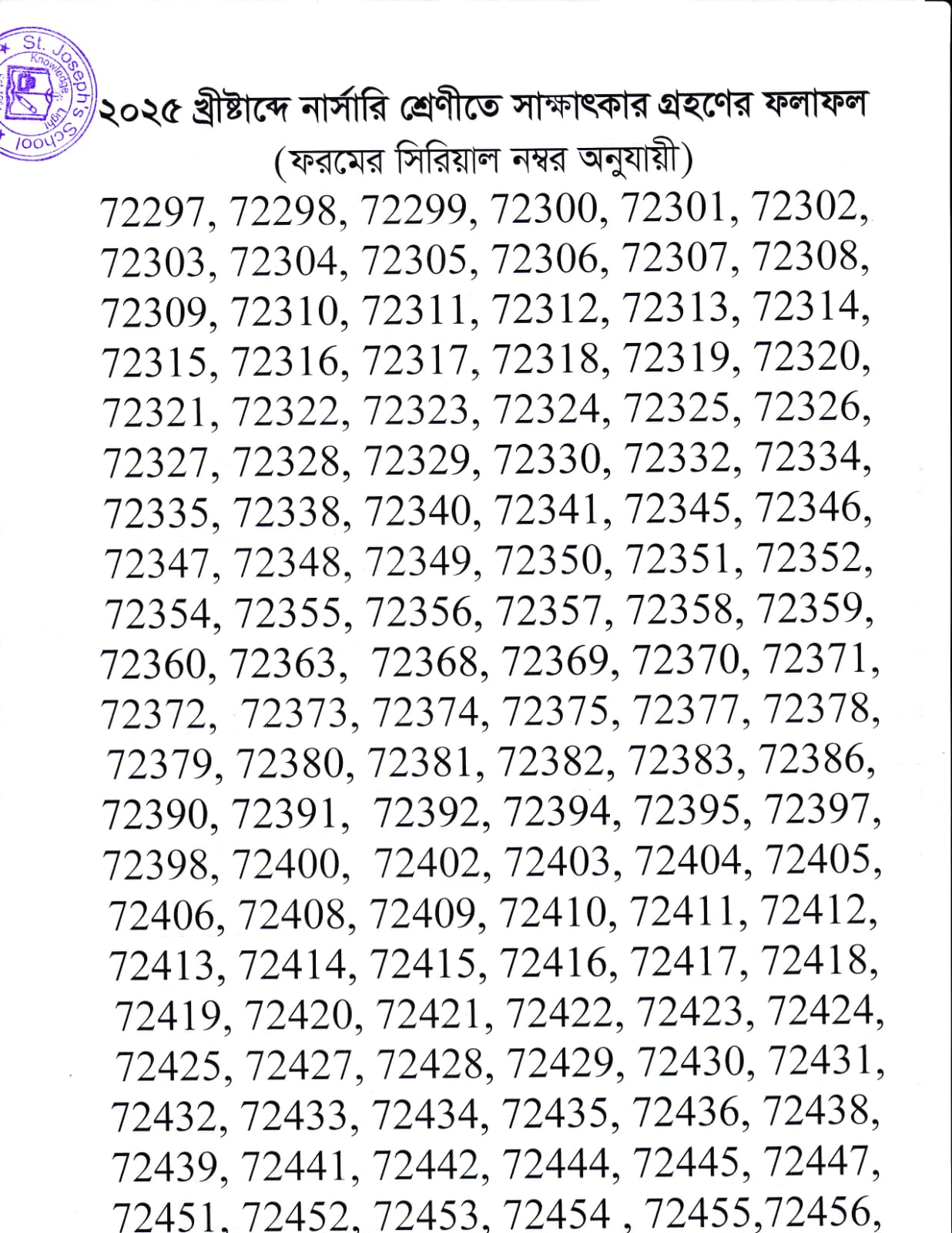 ২০২৫ খ্রিস্টাব্দে নার্সারি শ্রেণীতে ভর্তির ফলাফল