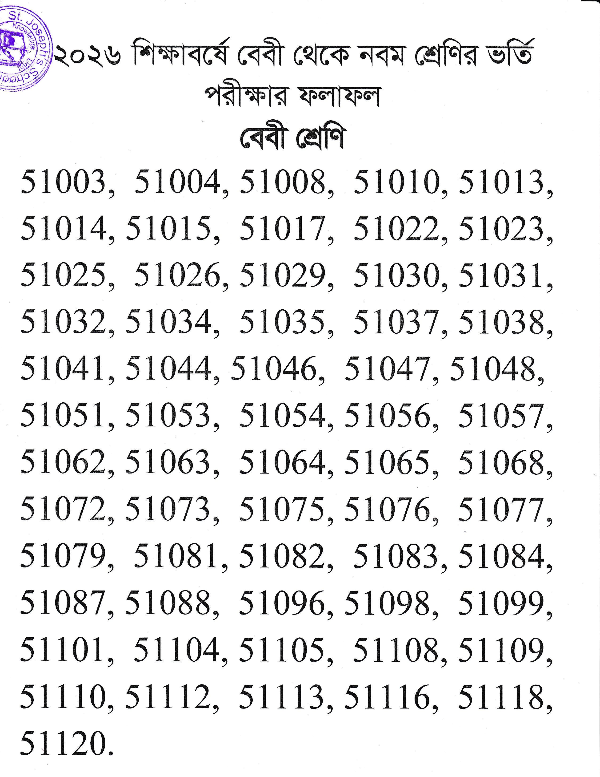 ২০২৬ শিক্ষাবর্ষে বেবী থেকে নবম শ্রেণির ভর্তি পরীক্ষার ফলাফল