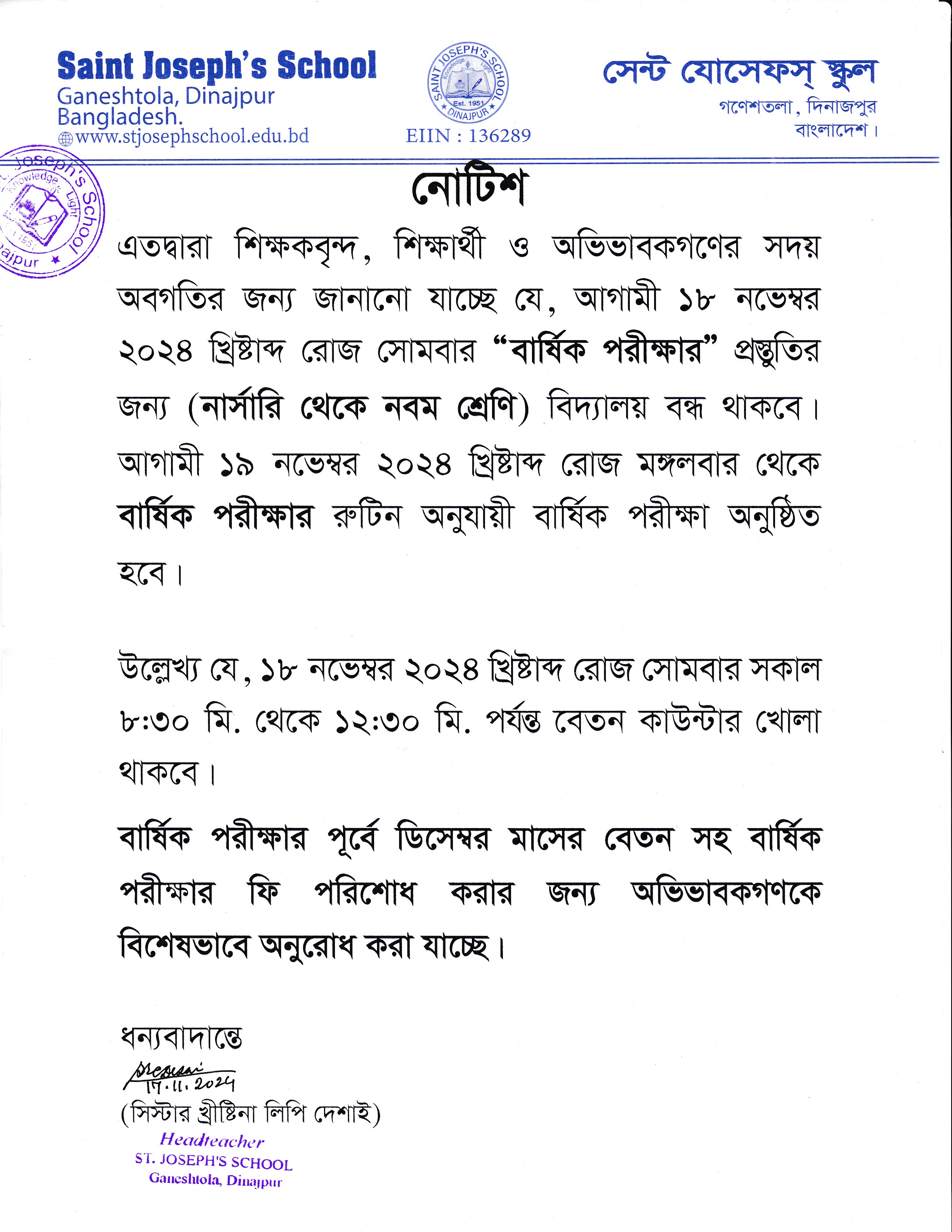বার্ষিক পরীক্ষার প্রস্তুতি প্রসঙ্গে ২০২৪ খ্রি: