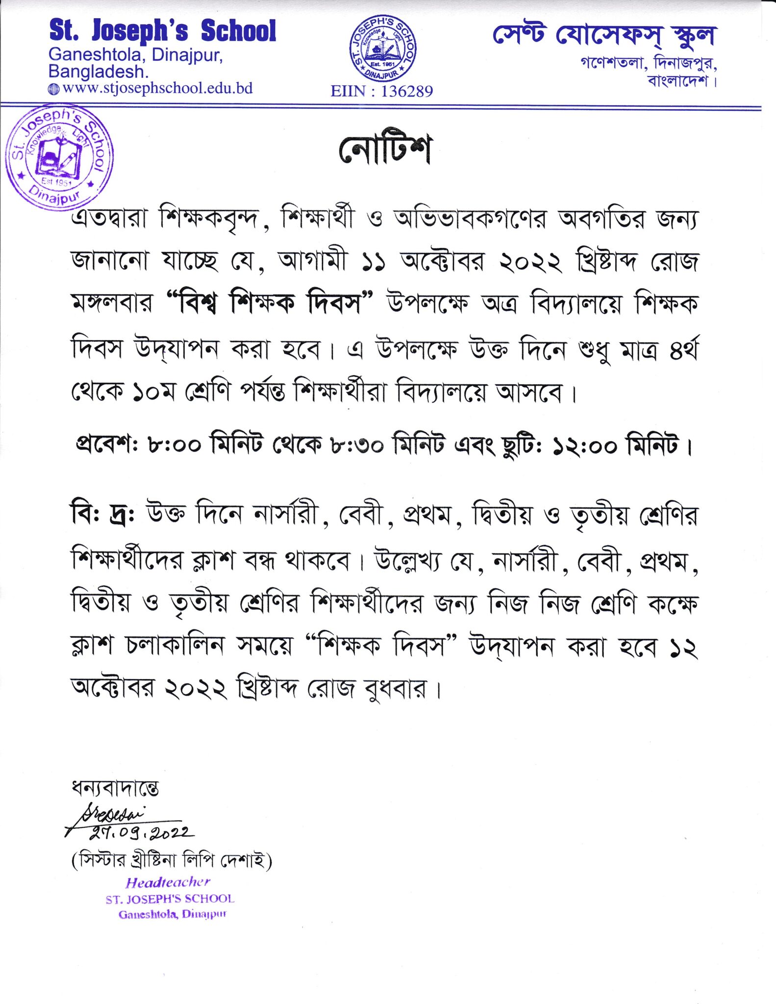 বিশ্ব শিক্ষক দিবস উদযাপন প্রসঙ্গে