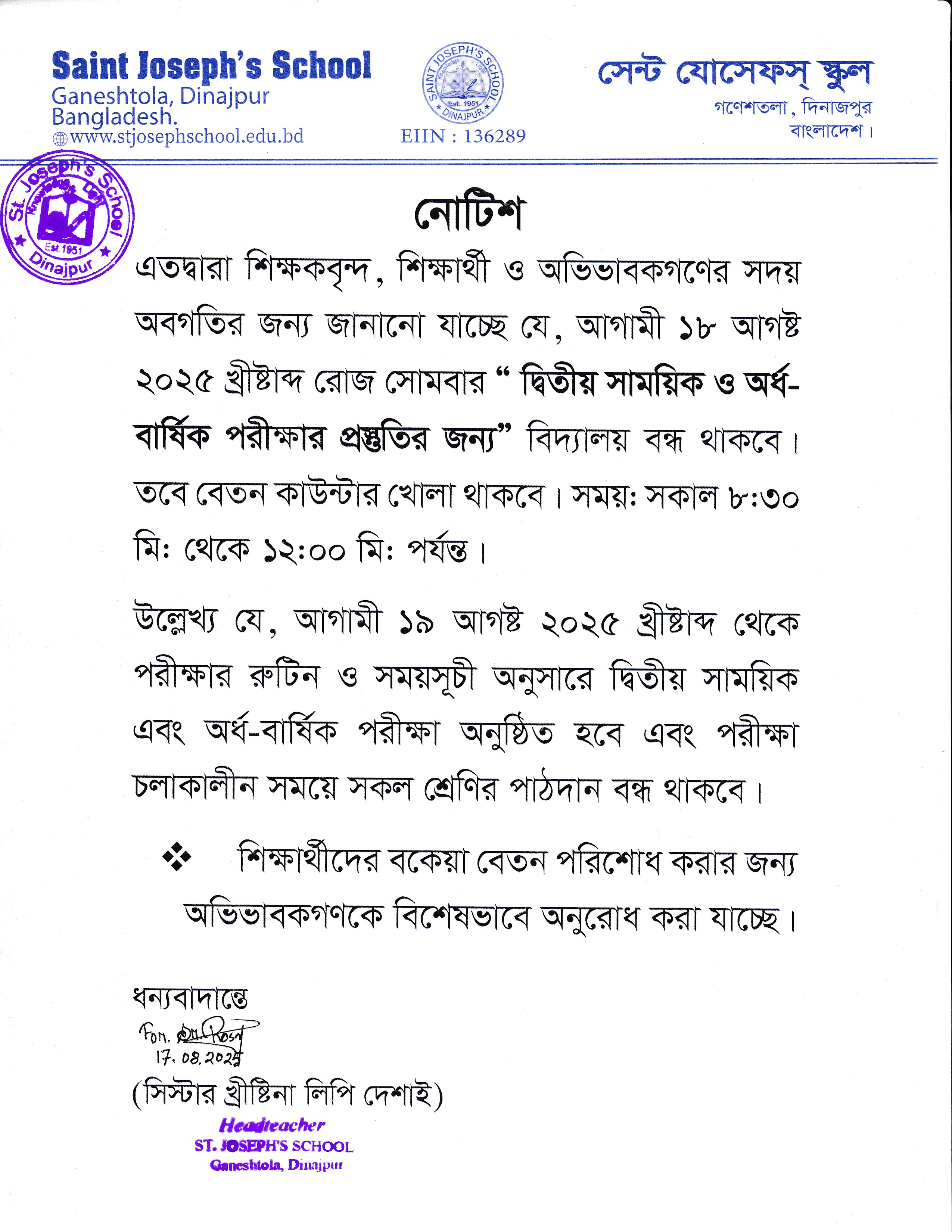 “ দ্বিতীয় সাময়িক ও অর্ধ-বার্ষিক পরীক্ষার প্রস্তুতির জন্য”