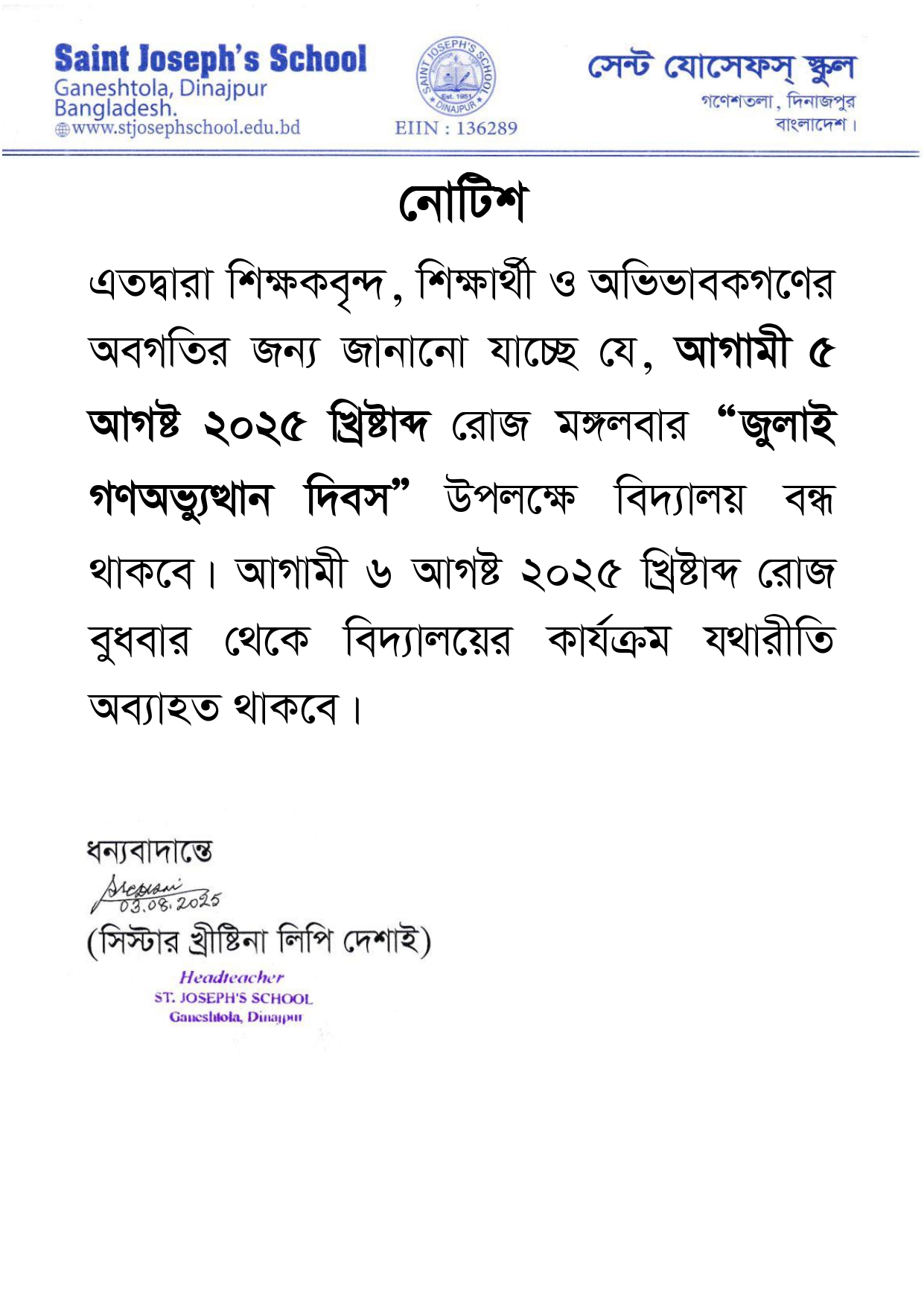 “জুলাই গণঅভ্যুত্থান দিবস” প্রসঙ্গে ২০২৫ খ্রি: