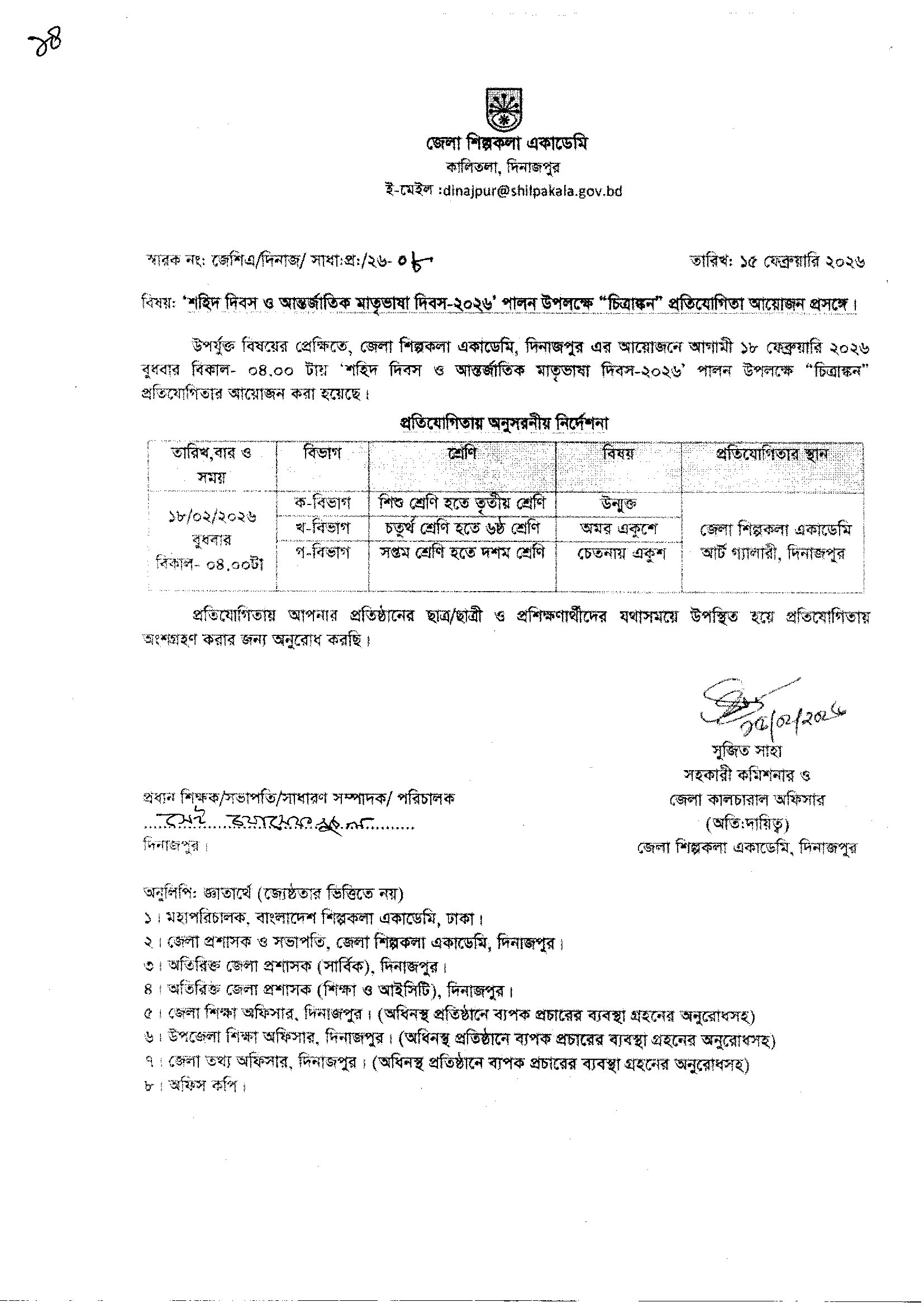 শহিদ দিবস ও আন্তর্জাতিক মাতৃভাষা দিবস-২০২৬ উপলক্ষে চিত্রাঙ্কন ও রচণা প্রতিযোগিতা এবং আবৃত্তি প্রসঙ্গে