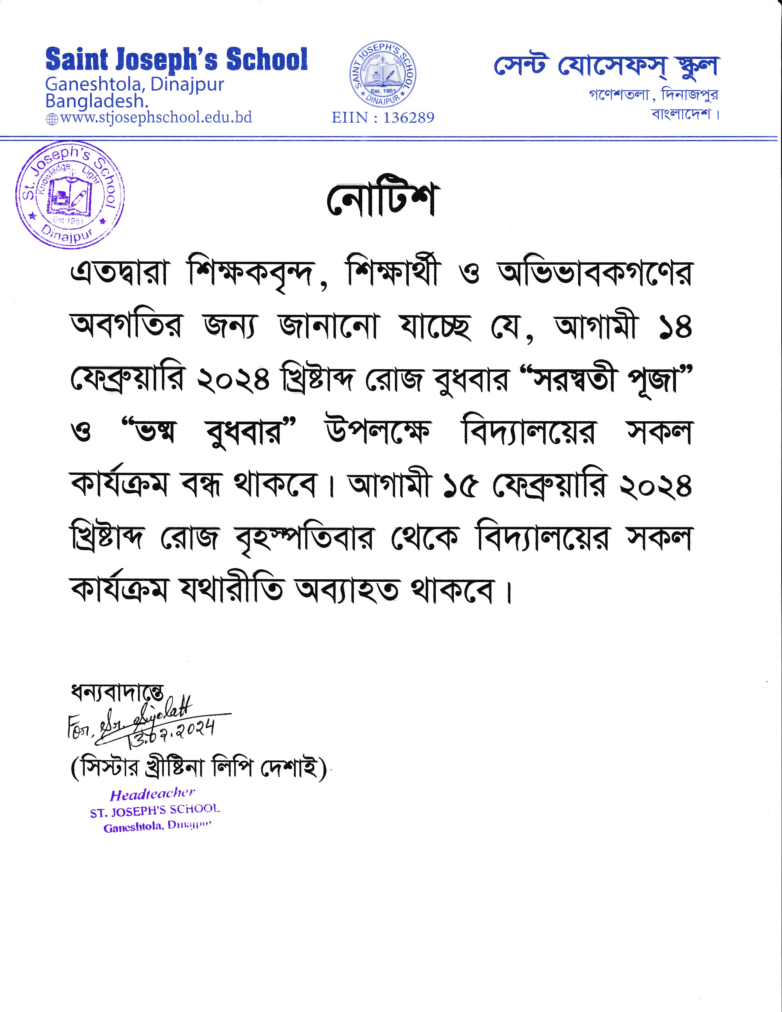 সরস্বতী পূজা ও ভষ্ম বুধবার প্রসঙ্গে